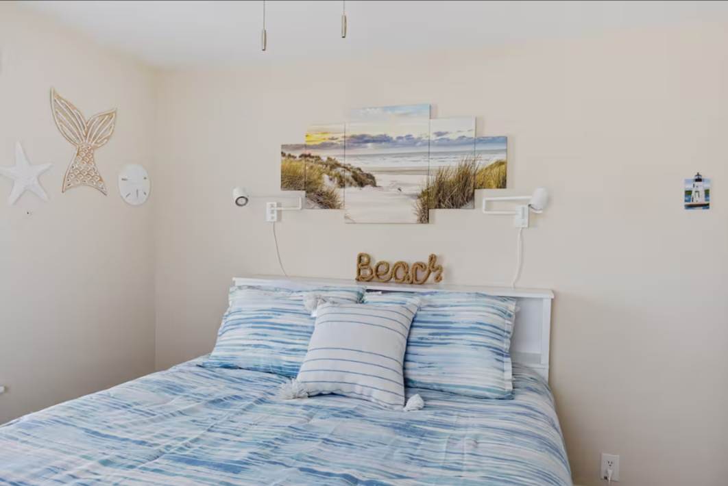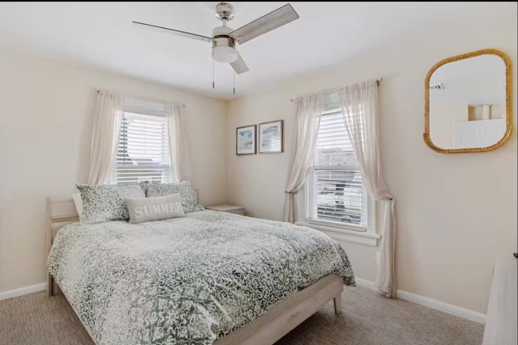 Bedroom 2: Queen bed, warm and airy with soft coastal décor.