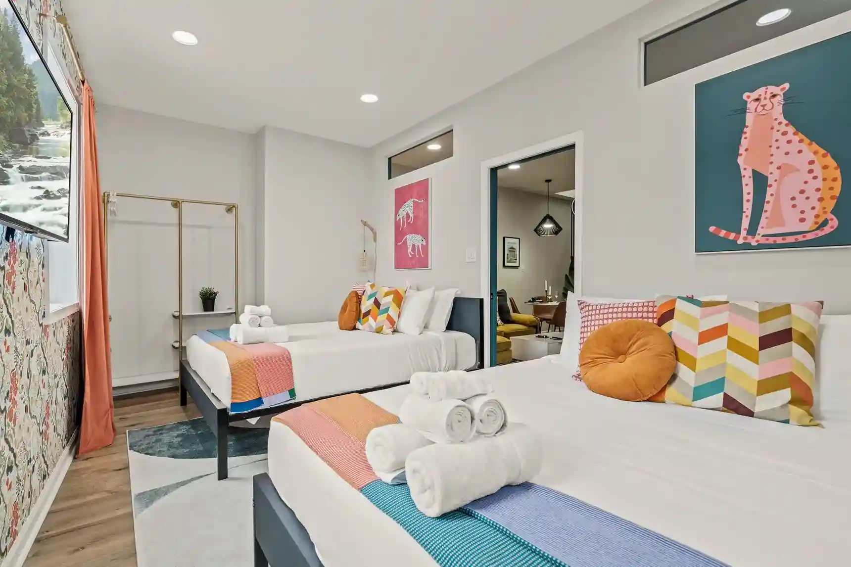 ☀ Stay Connected: 500 Mbps high-speed WiFi, Smart TVs in every room, and a dedicated workstation for remote work.