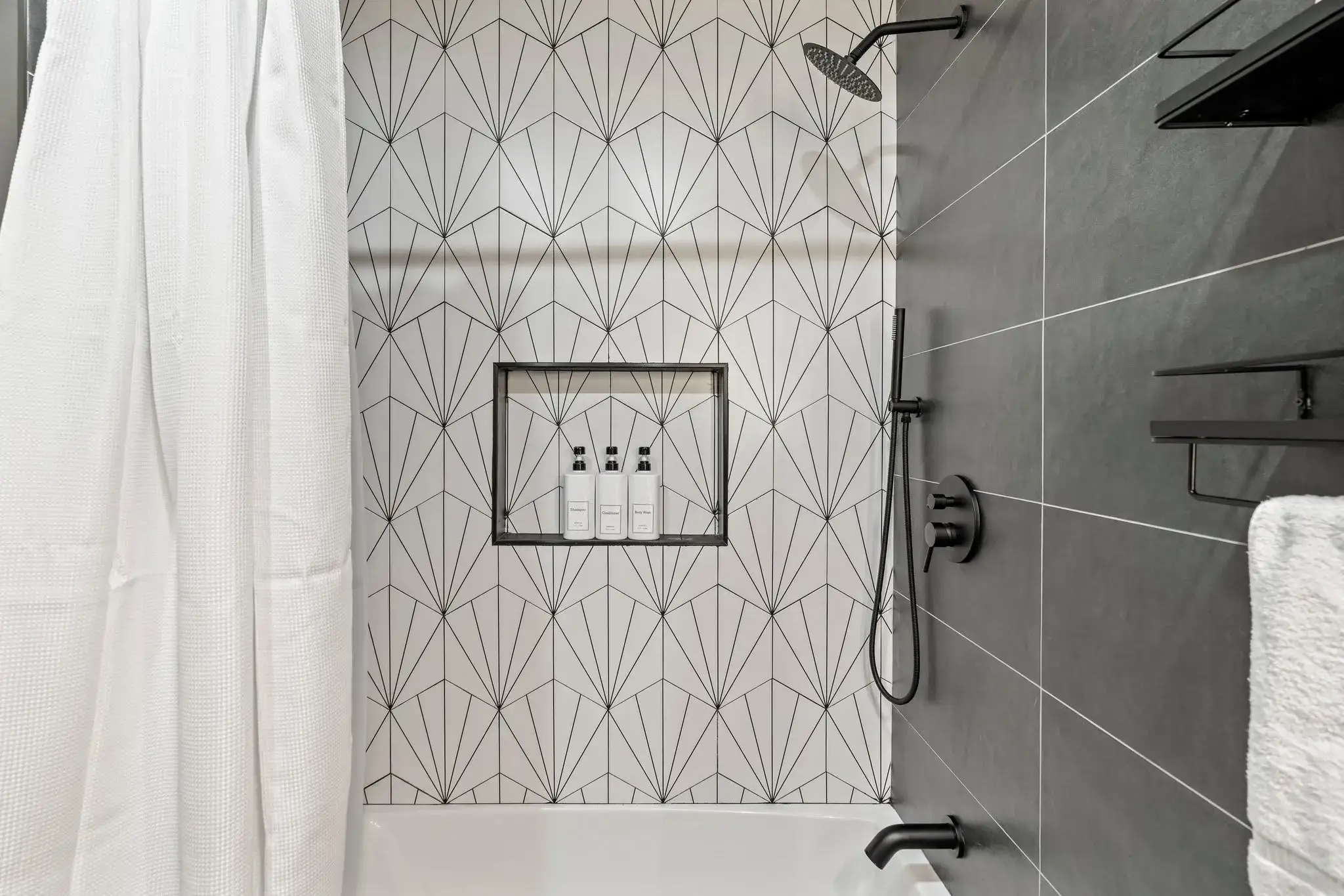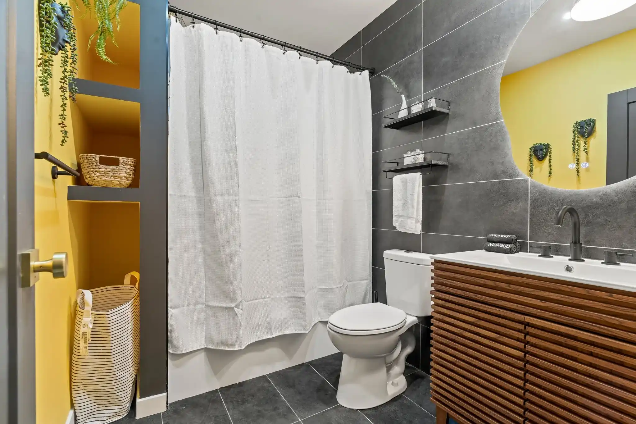☆☆ Your group will enjoy a beautifully renovated full bathroom with sleek tilework, modern fixtures, and bright lighting. Stocked with plush towels, shampoo, conditioner, body wash, and all the essentials, it provides a spa-like experience every time you freshen up.