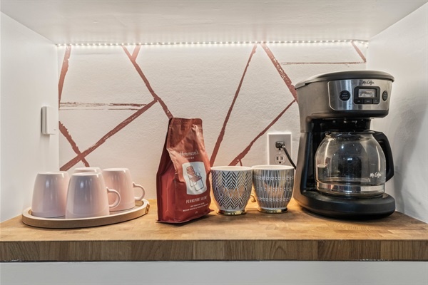☀ Fully Equipped Kitchen: Stainless appliances, drip coffee maker, cookware & designer comic-tile backsplash