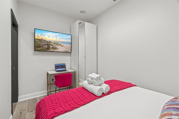 Check-in is seamless with a keyless Yale smart lock—you’ll receive your unique entry code before arrival for a smooth and secure self check-in experience.