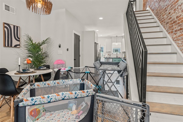โ Kid-friendly amenities: high chair, baby bath, toys, crib, and outlet covers