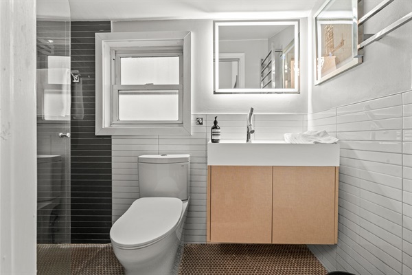 Both full bathrooms are clean, modern, and thoughtfully stocked with soft towels, shampoo, conditioner, and body wash. Whether you’re refreshing before a night out or soaking in a relaxing bath, you’ll feel right at home.